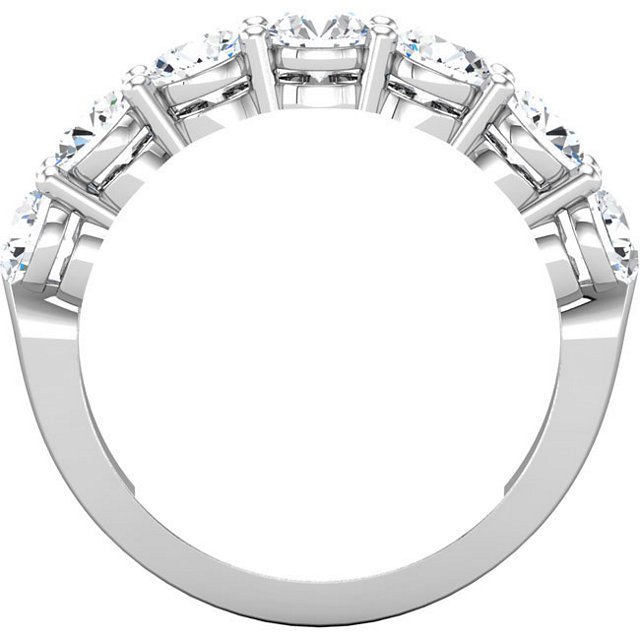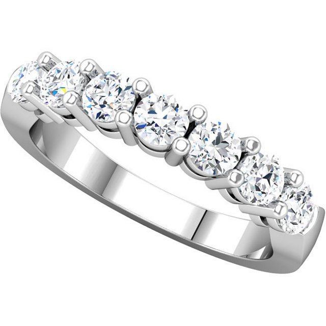 14K white gold, 7 diamonds anniversary band. The diamonds together weigh 1.5ct and are graded as VS in clarity G-H in color.
