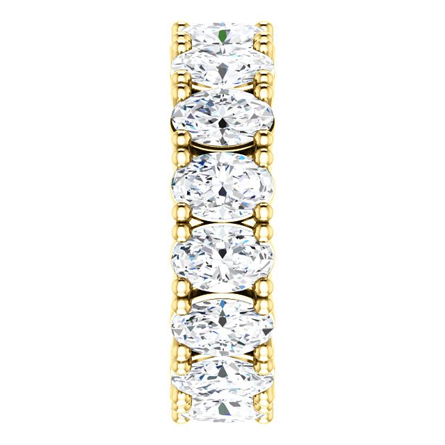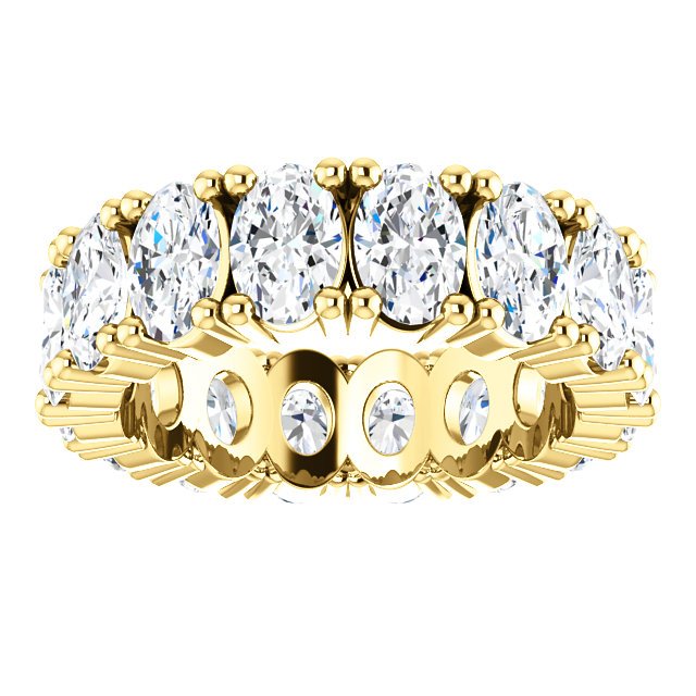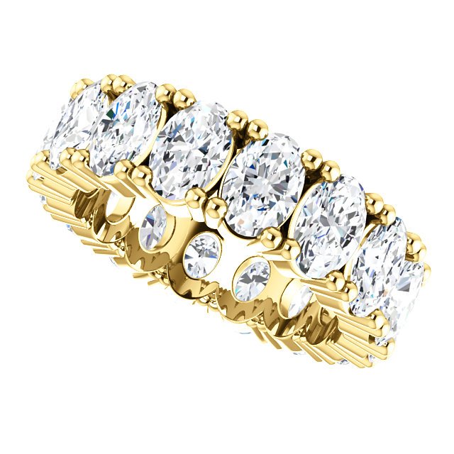 Oval Diamond Eternity Band 14K gold. 15 Diamonds each measures 6x4mm and together in size 6 weigh 7.50ct. The diamonds are all matching and are graded as VS2 in clarity G-H in color.