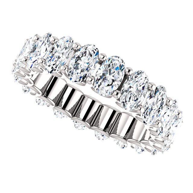 Platinum diamond eternity band made with all matching oval shape diamonds. In size 6.0 Diamonds approximate total weight is 4.0ct. Diamonds are graded as VS in clarity G in color..