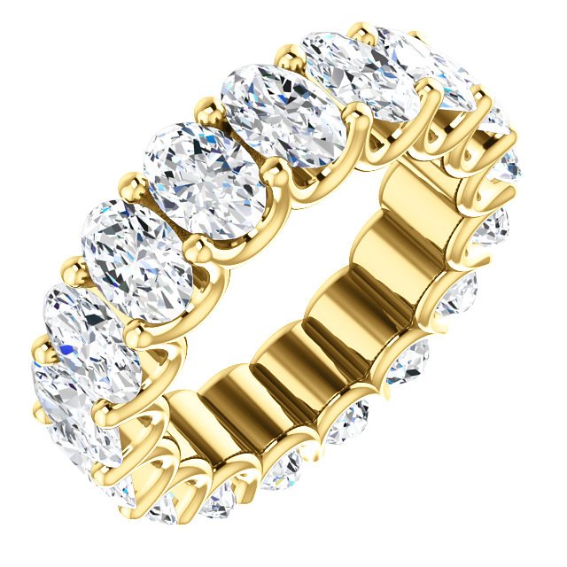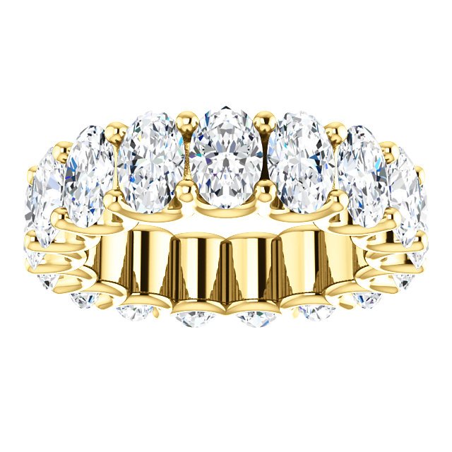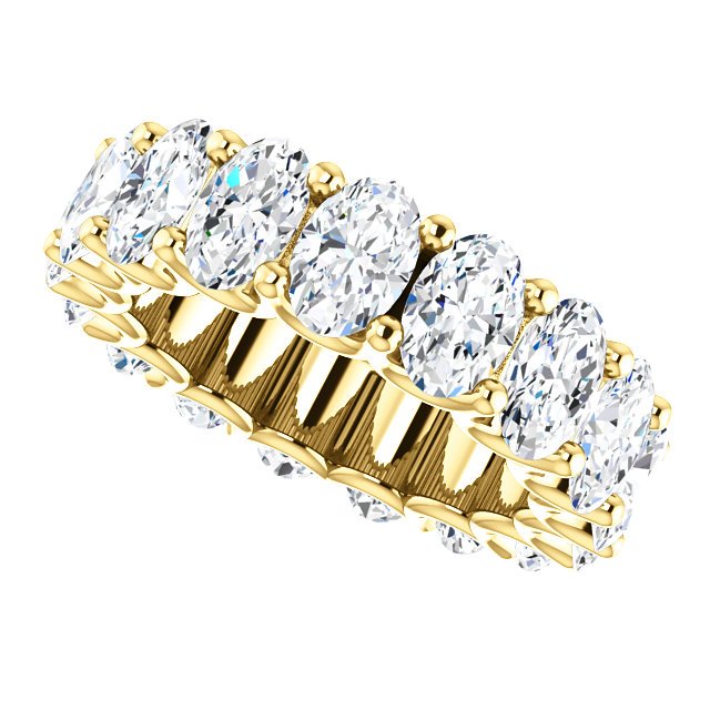 18K gold diamond eternity band made with all matching oval shape diamonds. In size 6.0 Diamonds approximate total weight is 7.0ct. Diamonds are graded as VS in clarity G in color..