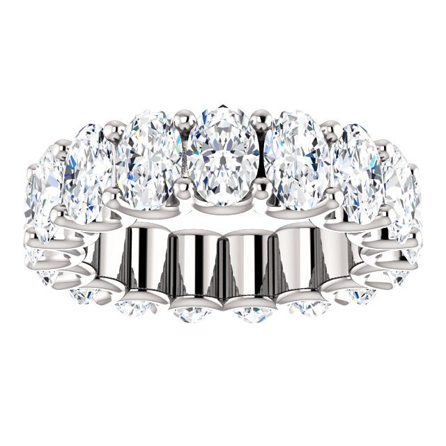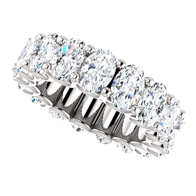 Platinum diamond eternity band made with all matching oval shape diamonds. In size 6.0 Diamonds approximate total weight is 7.0ct. Diamonds are graded as VS in clarity G in color..