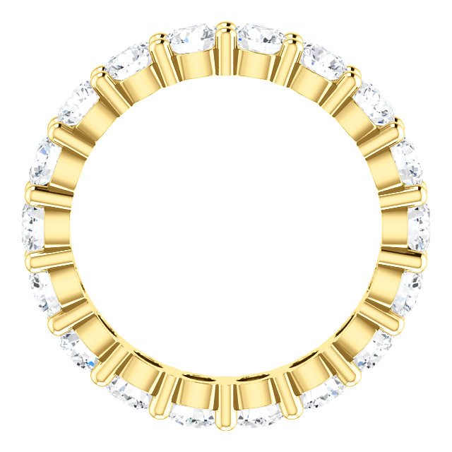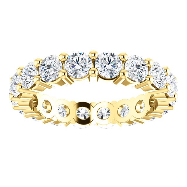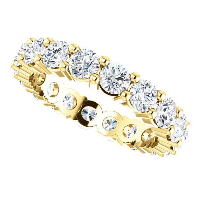 Round brilliant diamond eternity band in 14K gold. 16 Diamonds each measures 3.75mm in diameter. The diamonds together weigh approximately 3.2ct in size 6.0. The diamonds are all matching and are graded as VS2 in clarity G-H in color.