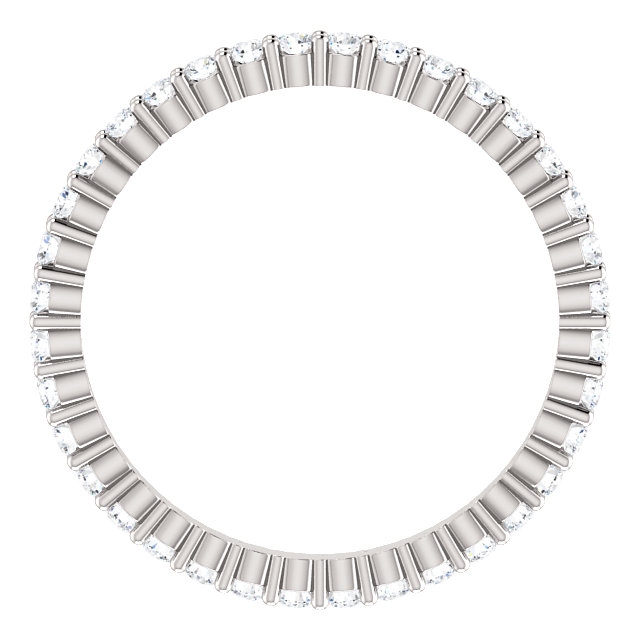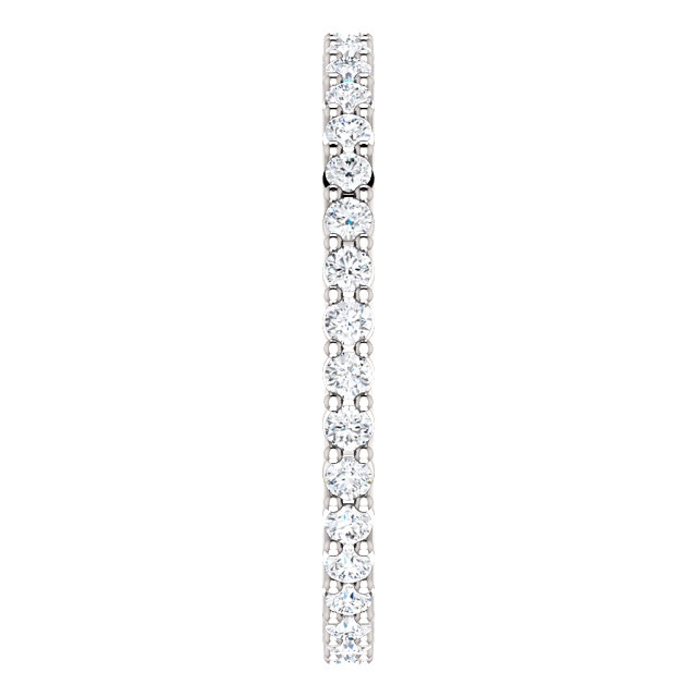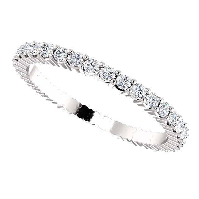 Platinum eternity band. The band in size 6.0 holds 36 round brilliant cut diamonds with total weight of approximately 0.50ct. The diamonds are graded as VS in clarity G-H in color.