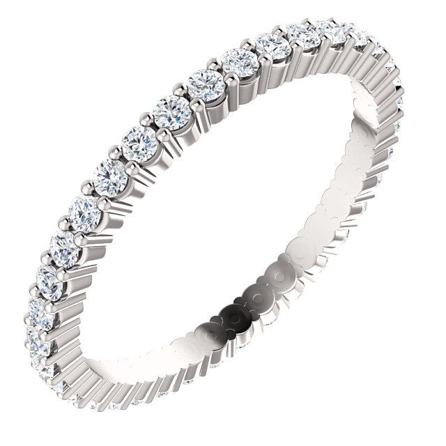 14K white gold eternity band. The band in size 6.0 holds 36 round brilliant cut diamonds with total weight of approximately 0.50ct. The diamonds are graded as VS in clarity G-H in color.