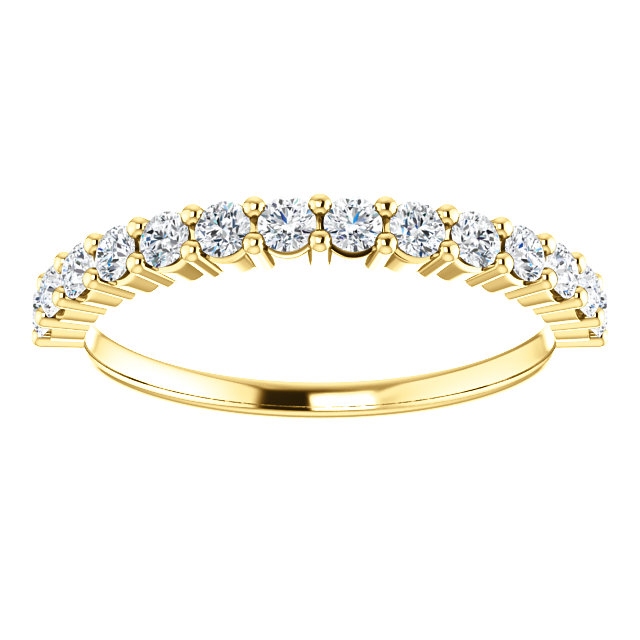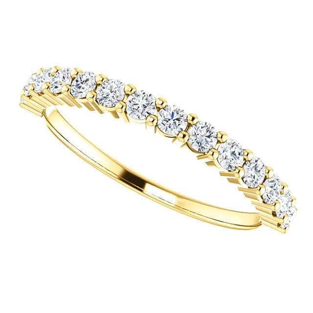 18K gold, 14 diamonds anniversary band. The diamonds together weigh 0.5ct and are graded as SI1 in clarity G-H in color.