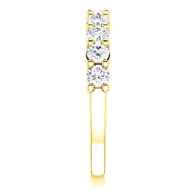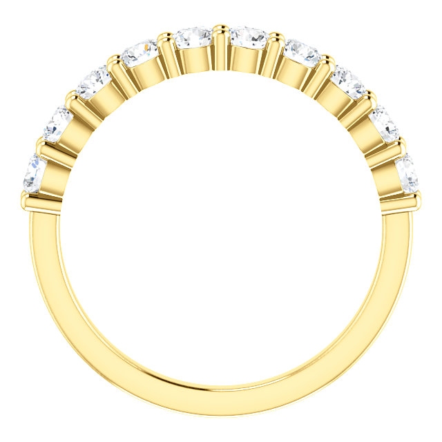 14K gold, 10 diamonds anniversary band. The diamonds together weigh 0.75ct and are graded as SI1 in clarity G-H in color.