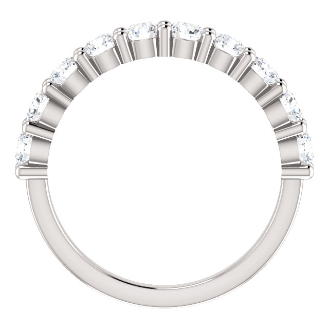 14K white gold, 10 diamonds anniversary band. The diamonds together weigh 1.00ct and are graded as SI1 in clarity G-H in color.