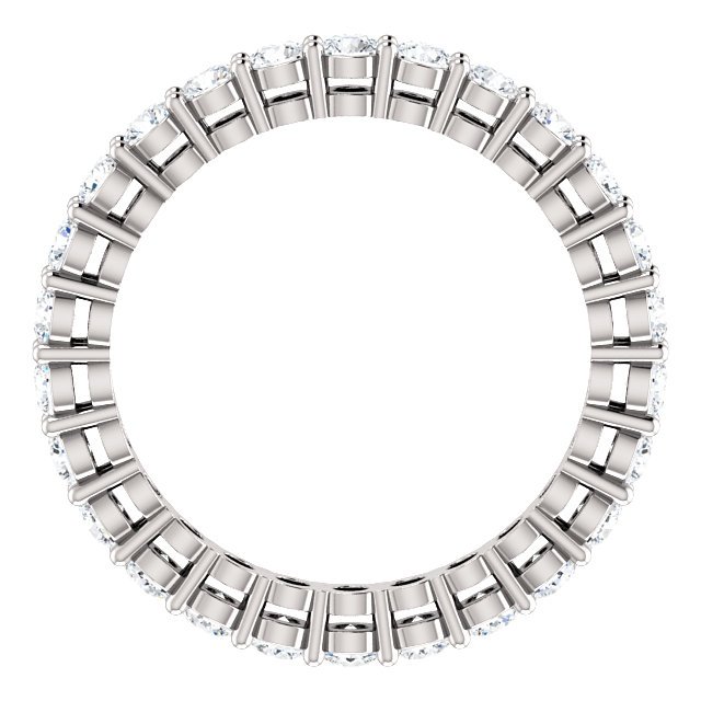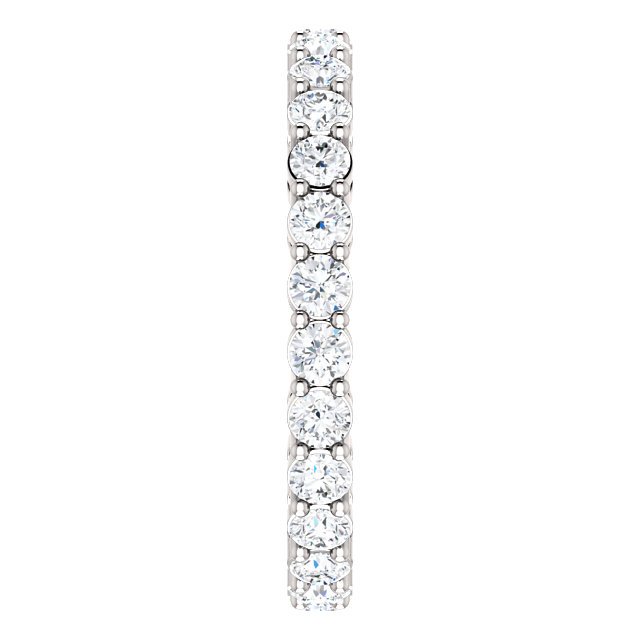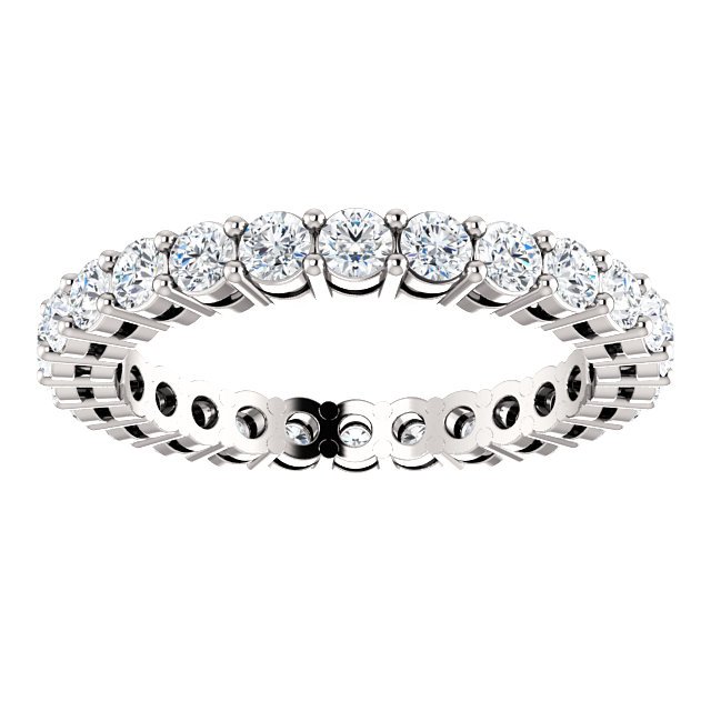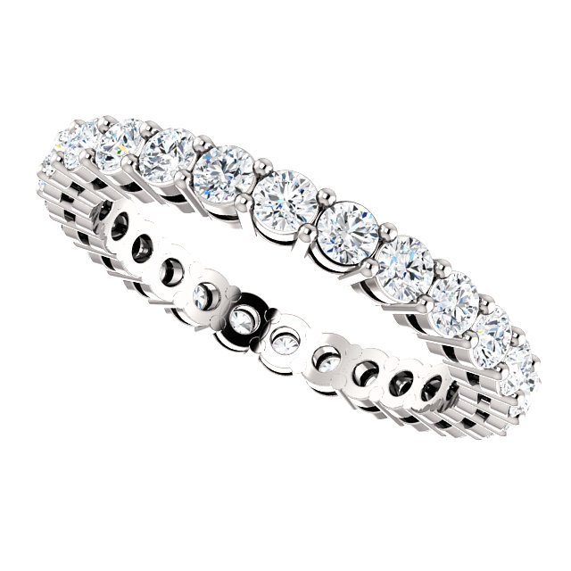 Platinum diamond eternity band. The ring in size 6.0 holds approximately 26 round brilliant cut diamonds with total weight of 1.0ct. The diamonds are graded as VS in clarity G-H in color.