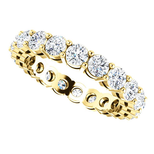 18K yellow gold diamond eternity band. The ring holds 20 round brilliant cut diamonds with total weight of approximately 1.75ct. The diamonds are graded as VS in clarity G in color.