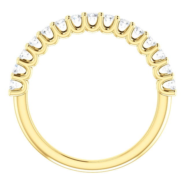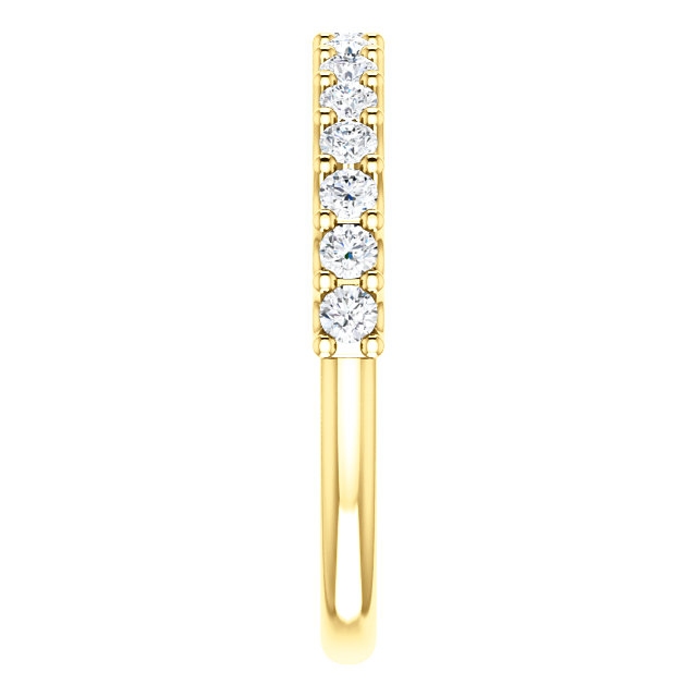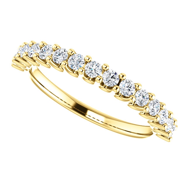 Eternal-Love 14K gold anniversary band. the ring holds 15 round brilliant diamonds with total weight of 0.50ct. The diamonds are graded as SI1 in clarity G-H in color.