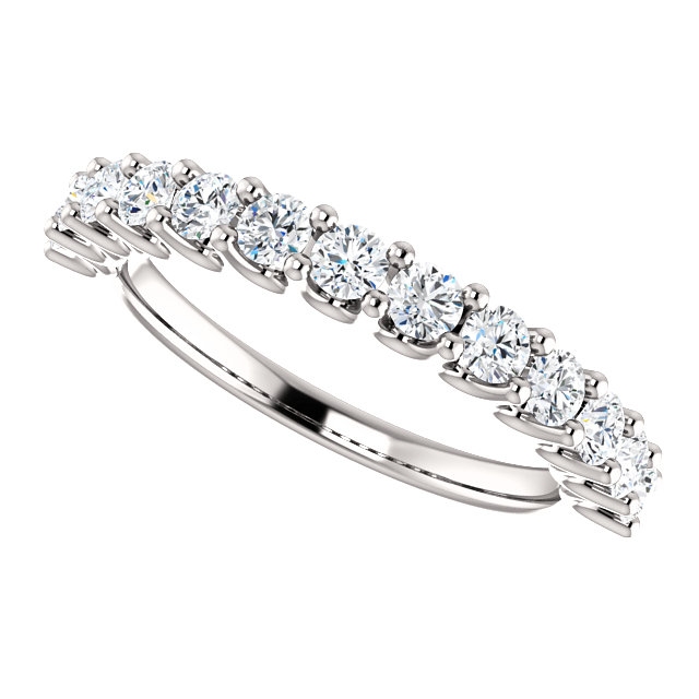 Eternal-Love platinum anniversary band. the ring holds 13 round brilliant diamonds with total weight of 0.75ct. The diamonds are graded as VS in clarity G-H in color.