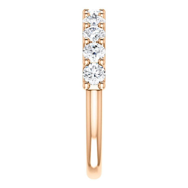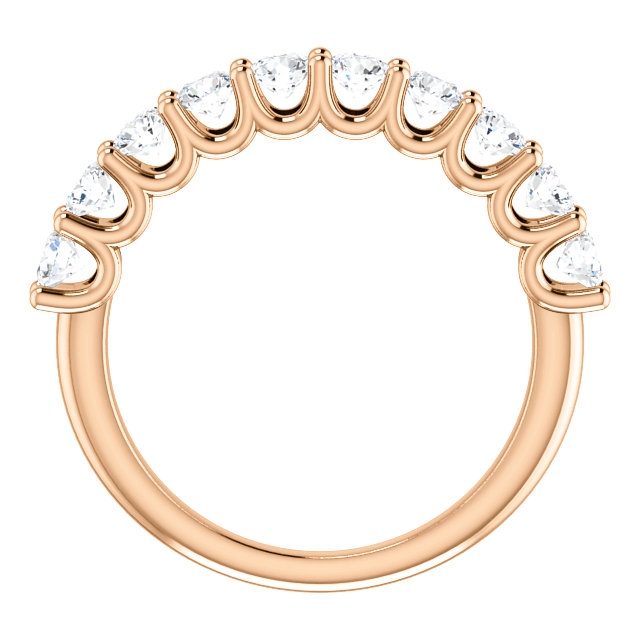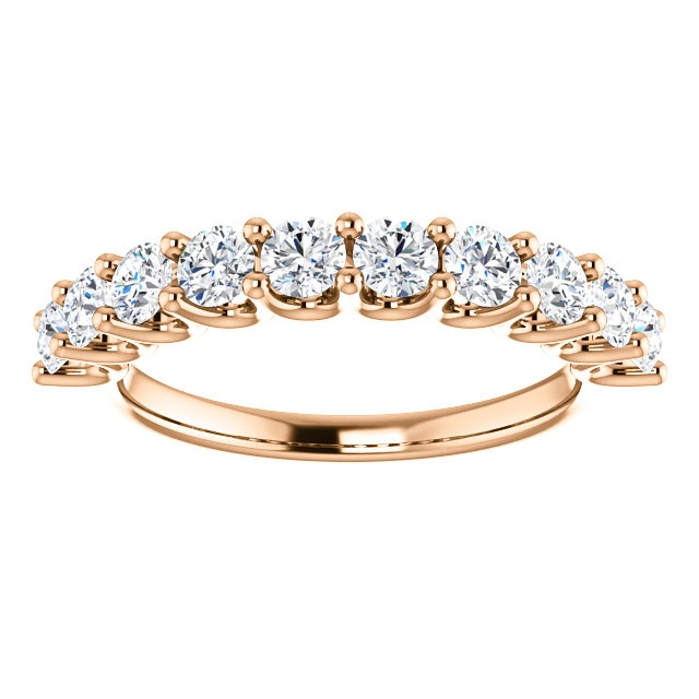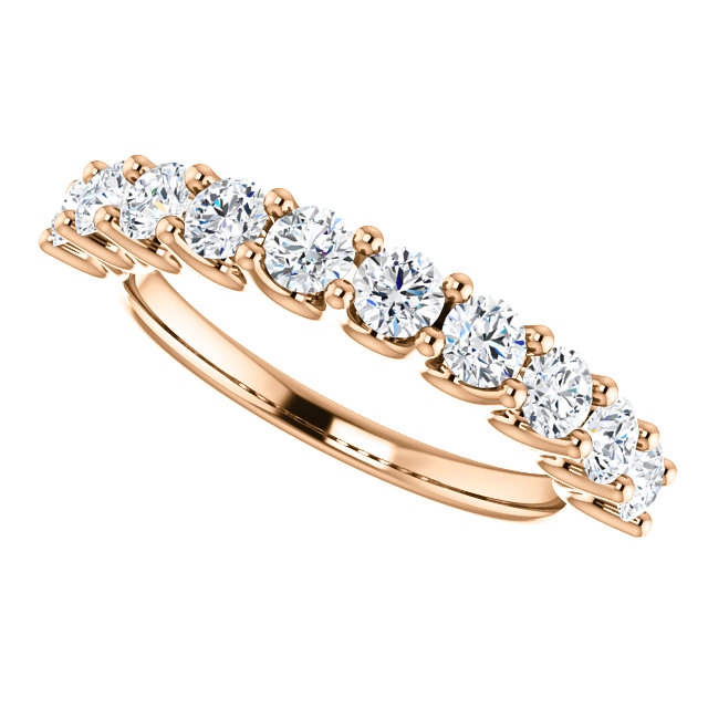 Eternal-Love 14K rose gold anniversary band. the ring holds 10 round brilliant diamonds with total weight of 1.0ct. The diamonds are graded as SI1 in clarity G-H in color.