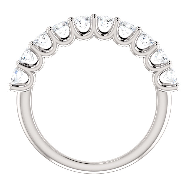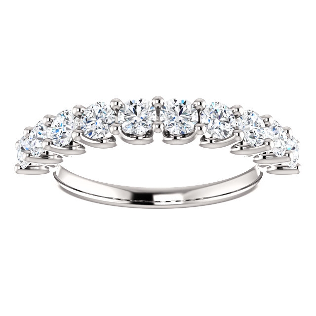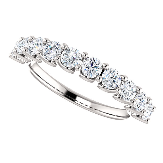 Eternal-Love 14K white gold anniversary band. the ring holds 10 round brilliant diamonds with total weight of 1.0ct. The diamonds are graded as SI1 in clarity G-H in color.