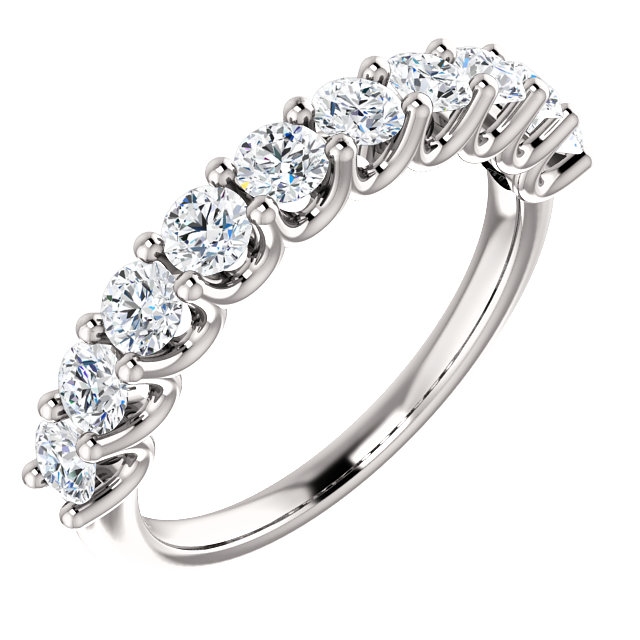 Eternal-Love 18K white gold anniversary band. the ring holds 10 round brilliant diamonds with total weight of 1.0ct. The diamonds are graded as SI1 in clarity G-H in color.