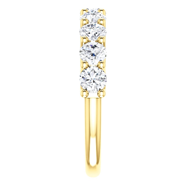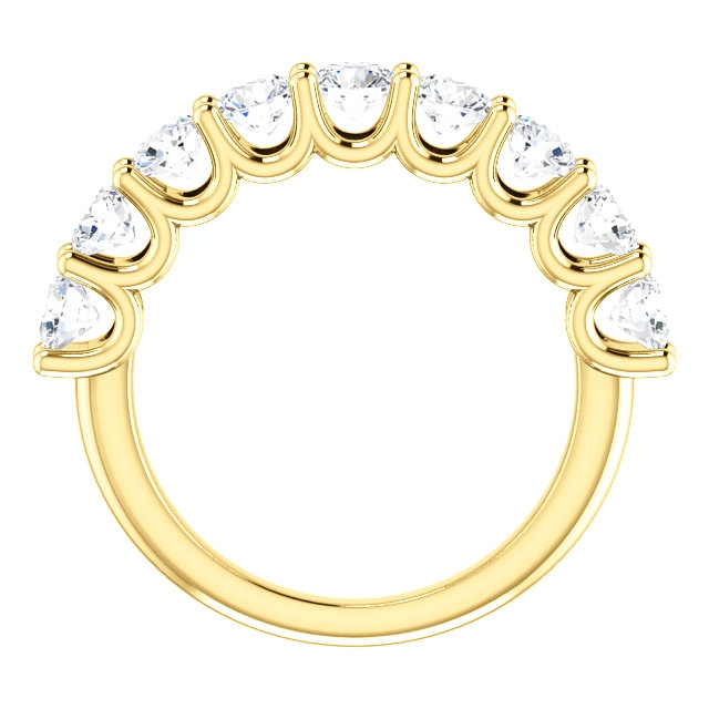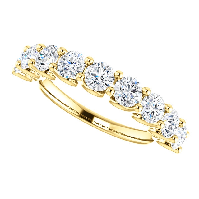 Eternal-Love 18K gold anniversary band. the ring holds 9 round brilliant diamonds with total weight of 1.75ct. The diamonds are graded as SI1 in clarity G-H in color.