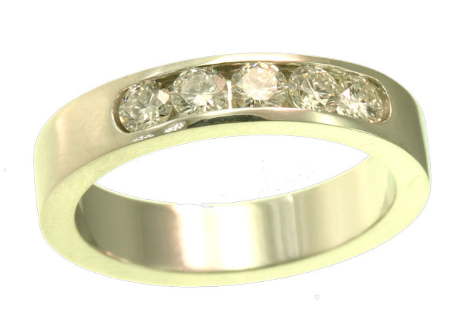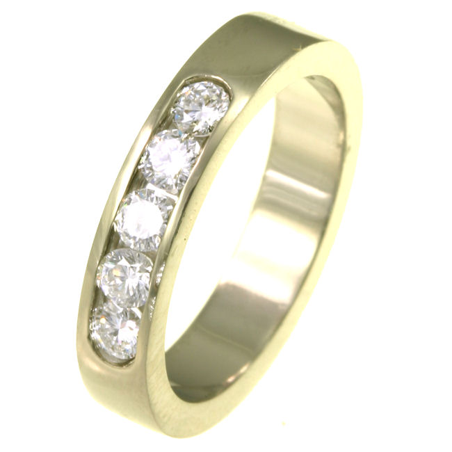 14K yellow gold, comfort fit, 4.0 mm wide diamond wedding band. Diamonds total weight is 0.50 ct. The diamonds are graded as VS1-2 in clarity G-H in color. The finish on the ring is polished. Other finishes may be selected or specified.