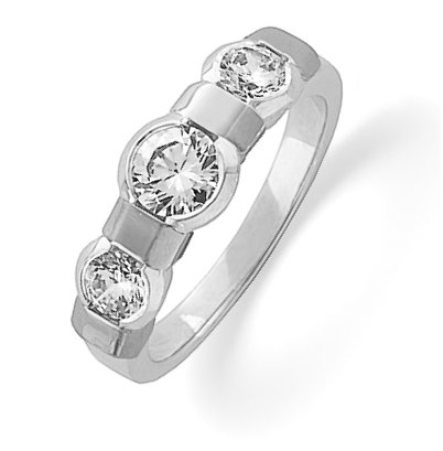 14 K white gold ring holds three round brilliant cut diamonds with total weight 0.50 ct. The diamonds are graded as VS1-2 in clarity G-H in color. The finish on the ring is polished. Other finishes may be selected or specified.