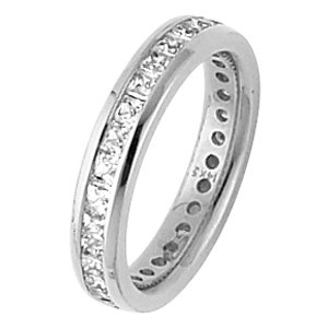 One platinum eternity ring. Each diamond measures approximately 2.25mm and in size 6.0 the ring holds 27 princess cut brillliant diamonds. The diamonds total weight in size 6.0 is approximately 1.94 ct. The diamonds are graded as VS in clarity G-H in color.