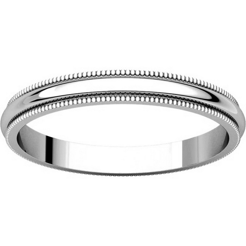 Palladium, 2.5 mm wide, comfort fit, milgrain edge wedding band. The finish on the ring is polished. Other finishes may be selected or specified.