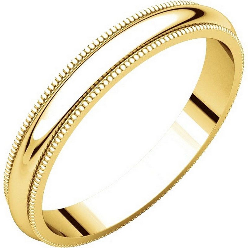 18K gold 3.0 mm wide, comfort fit, milgrain edge wedding band. The finish on the ring is polished. Other finishes may be selected or specified.