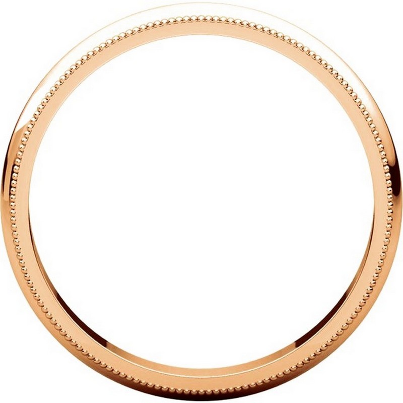 14K Rose gold 3.0 mm wide, comfort fit, milgrain edge wedding band. The finish on the ring is polished. Other finishes may be selected or specified.