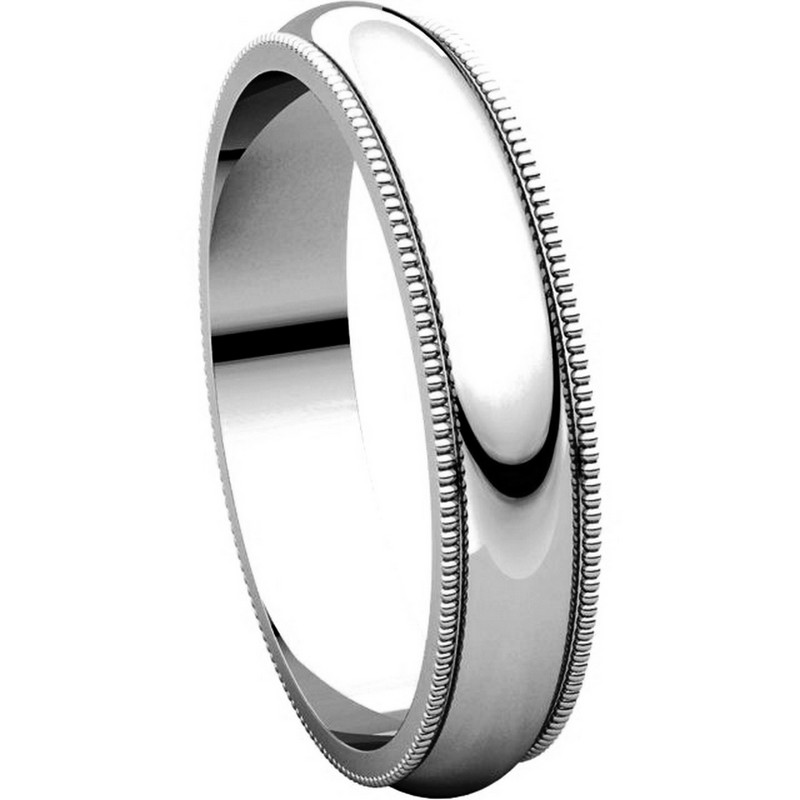18K white gold 4.0 mm wide, comfort fit, milgrain edge wedding band. The finish on the ring is polished. Other finishes may be selected or specified.