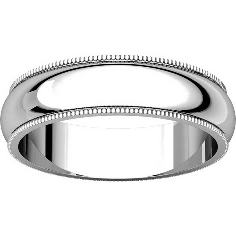 Palladium, 5.0 mm wide, comfort fit, milgrain edge wedding band. The finish on the ring is polished. Other finishes may be selected or specified.