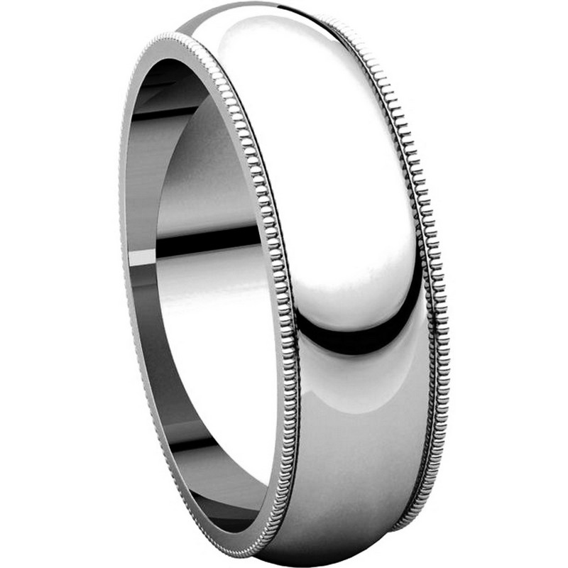 14K white gold 6.0 mm wide comfort fit milgrain edge wedding band. The finish on the ring is polished. Other finishes may be selected or specified.