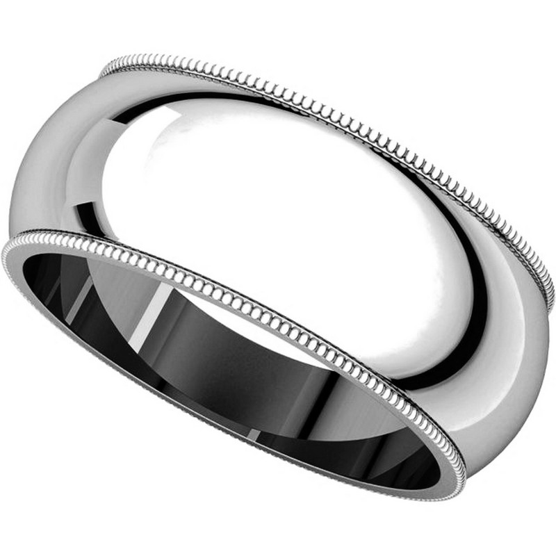 14K white gold, 8.0 mm wide, comfort fit, milgrain edge wedding band. The finish on the ring is polished. Other finishes may be selected or specified.