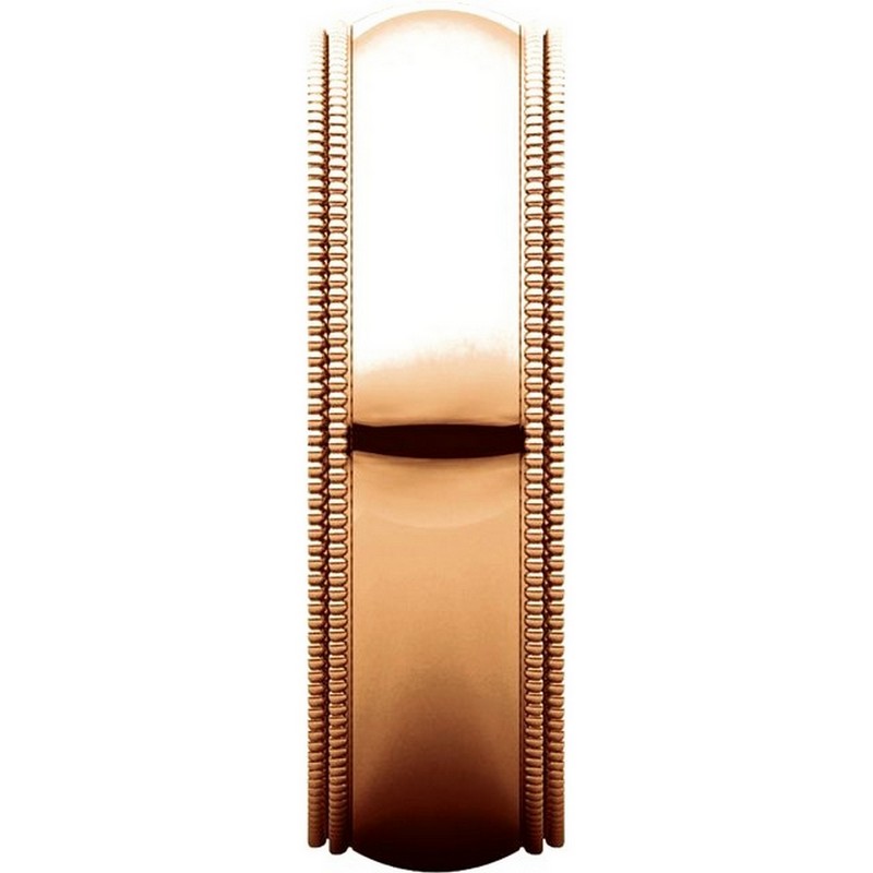 14K Rose gold 6.0 mm wide comfort fit double milgrain edge wedding band. The finish on the ring is polished. Other finishes may be selected or specified.