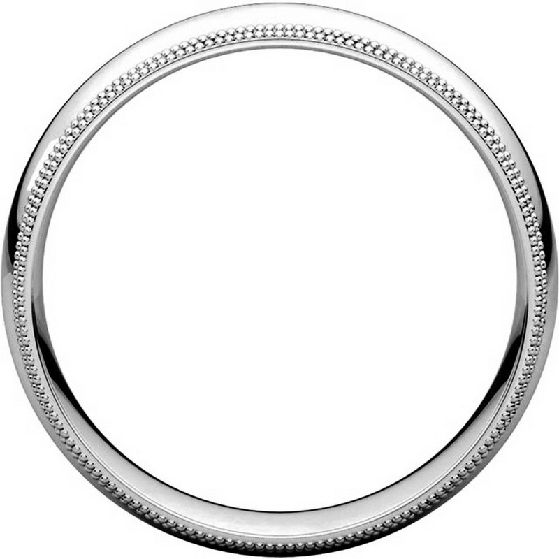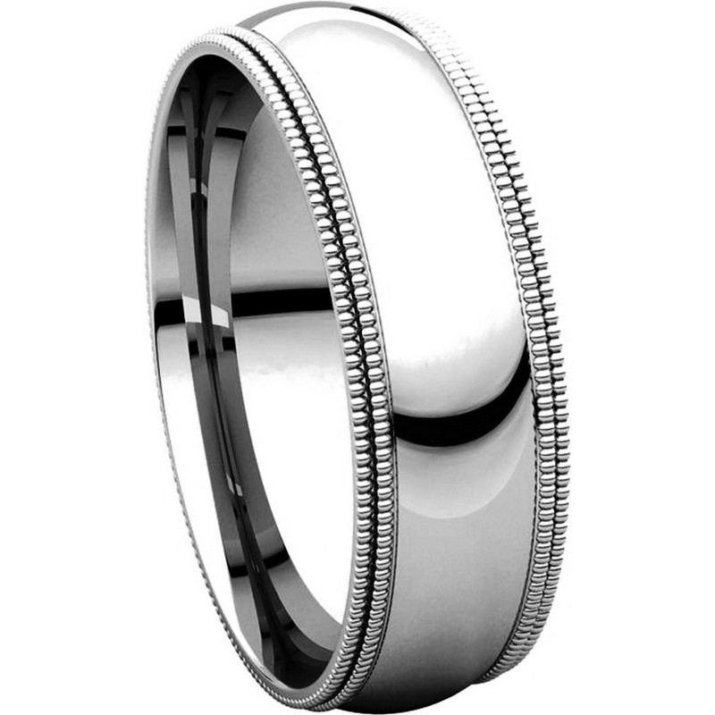 18K white gold 6.0 mm wide comfort fit double milgrain edge wedding band. The finish on the ring is polished. Other finishes may be selected or specified.
