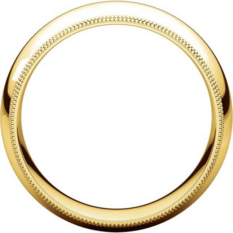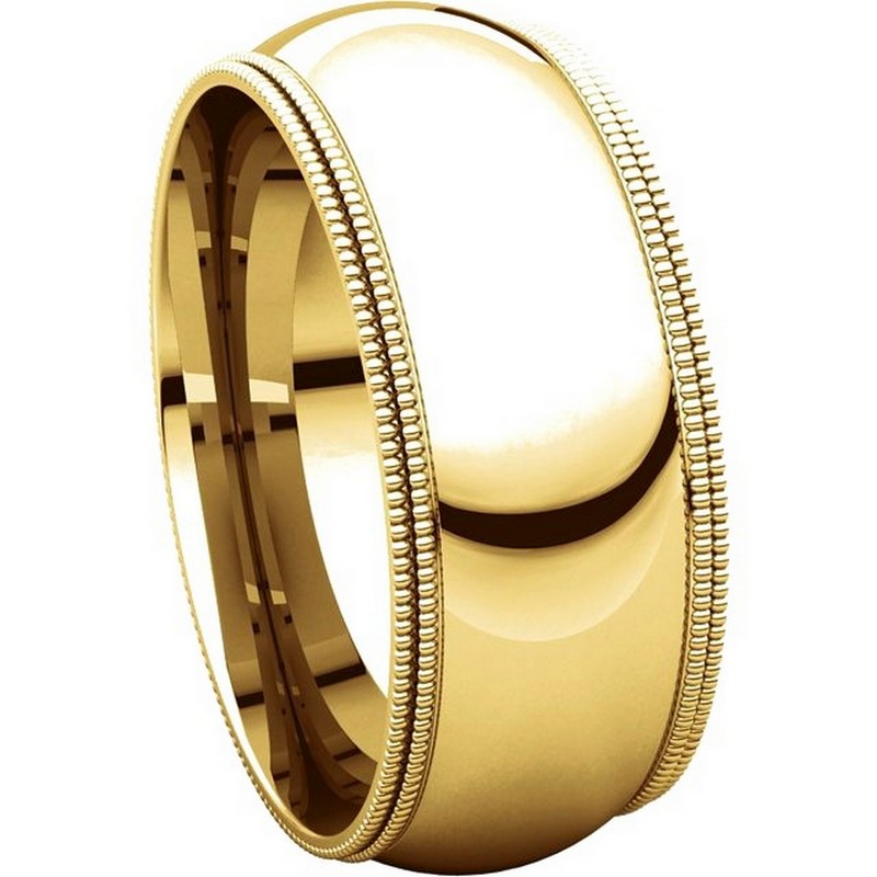 14K gold 8.0 mm wide comfort fit double milgrain edge wedding band. The finish on the ring is polished. Other finishes may be selected or specified.