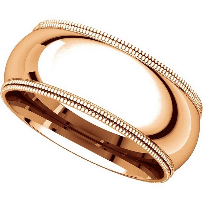 18K Rose Gold 8mm Double Milgrain Wedding Band
