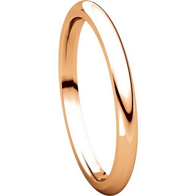 14K Rose gold, 2.0 mm wide, comfort fit, wedding band. The finish on the ring is polished. Other finishes may be selected or specified.