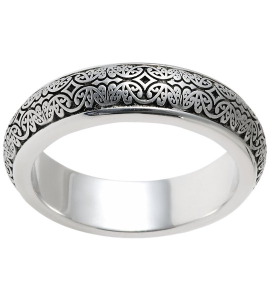 18kt white gold, 6.0mm wide, comfort fit, Verona Lace design wedding band. See V11474WE for matching ladies' ring.