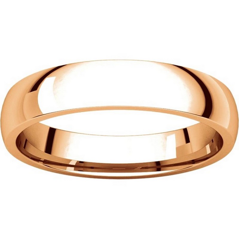 14K Rose gold, 4.0 mm wide, comfort fit, wedding band. The finish on the ring is polished. Other finishes may be selected or specified.