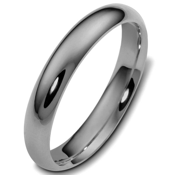 Titanium, plain, comfort fit, 4.0 mm wide wedding band. The finish on the ring is polished. Other finishes may be selected or specified.