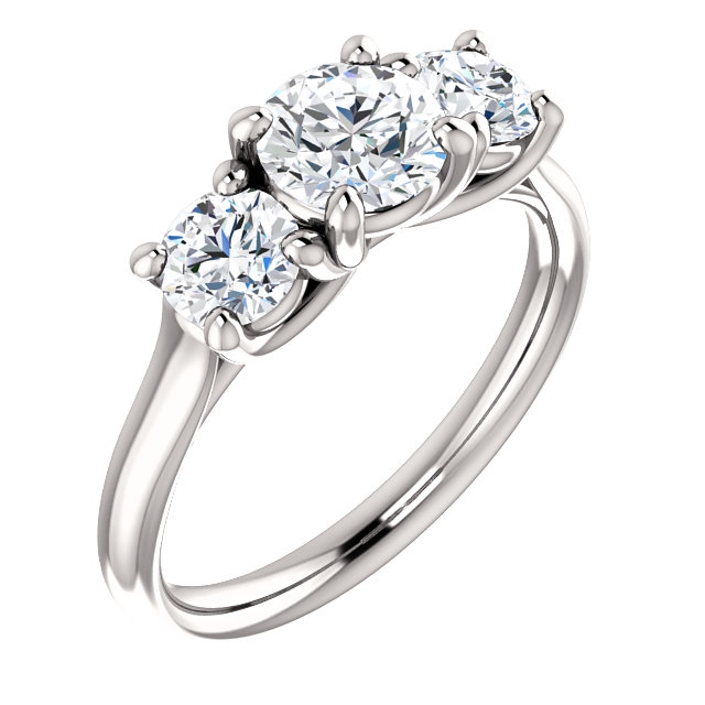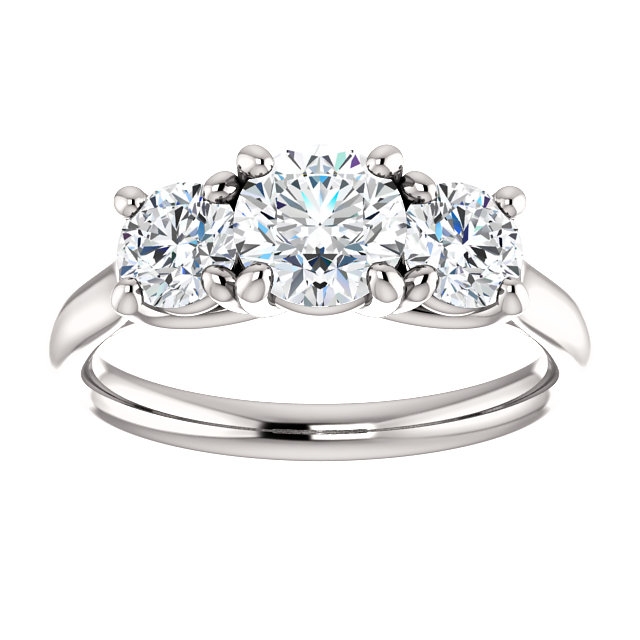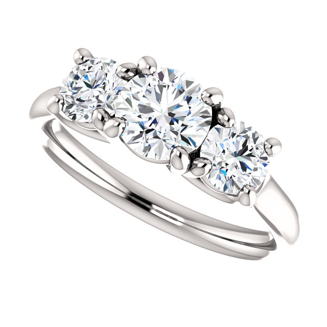 One platinum, three diamond anniversary band. Diamonds together weigh approximately 1.50 ct and are graded as VS2 in Clarity H in color. Center diamond is 0.75ct. All diamonds are are certified by GIA. The finish on the ring is polished. Other finishes may be selected or specified.