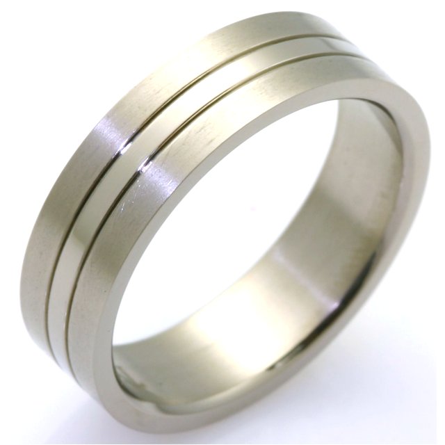 Titanium ring with shiny stripe in the center - 6.5mm width. Available between size 9 to 13 in half size increments