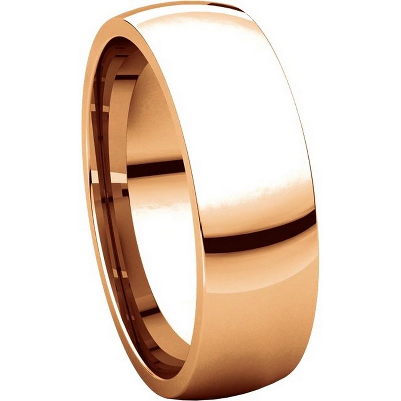 18K Rose gold, 6.0 mm wide, comfort fit, wedding band. The finish on the ring is polished. Other finishes may be selected or specified.