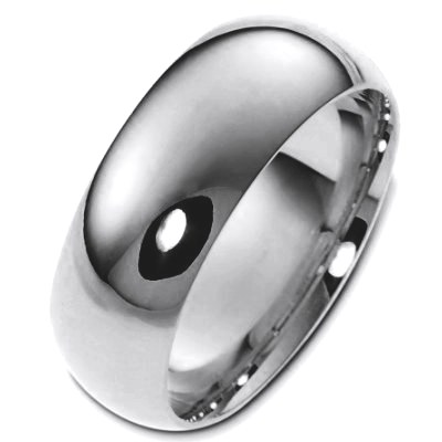 Titanium, 8.0 mm wide, comfort fit plain wedding band. The finish on the ring is polished. Other finishes may be selected or specified.