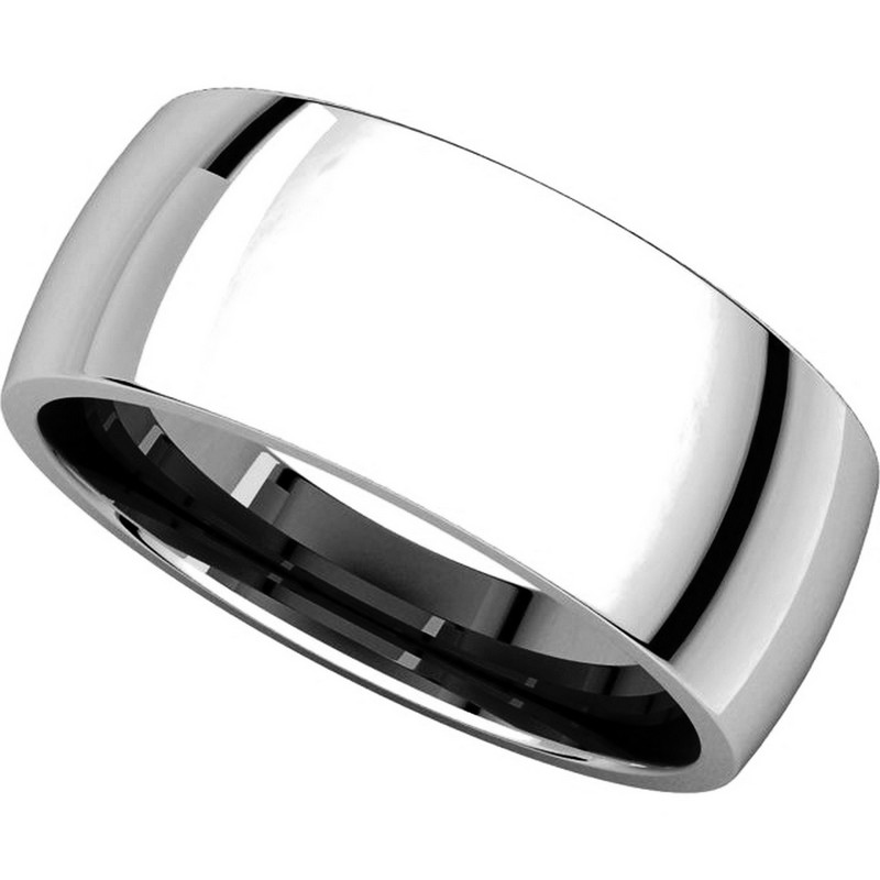14K white gold 8.0 mm wide, comfort fit wedding band. The finish on the ring is polished. Other finishes may be selected or specified.