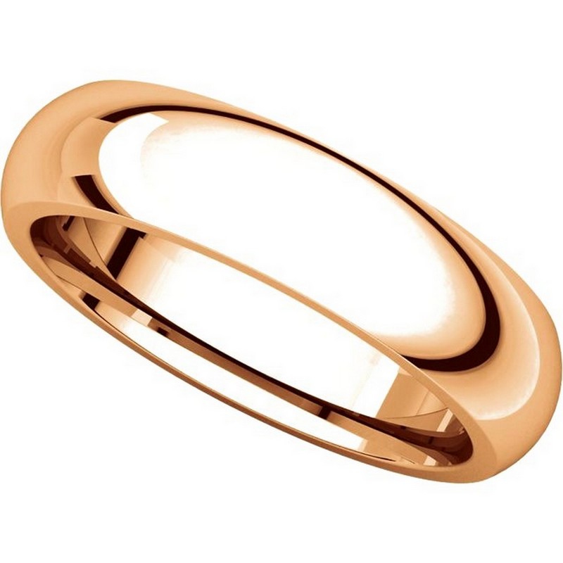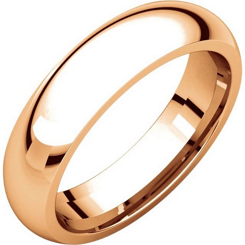 14K Rose gold, 5.0 mm wide,  heavy comfort fit, wedding band. The finish on the wedding ring is polished. Other finishes may be selected or specified.