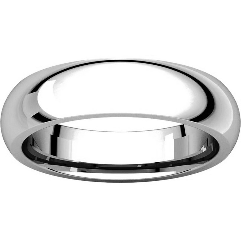 14K white gold, 5.0 mm wide, heavy comfort fit, wedding band. The finish on the wedding ring is polished. Other finishes may be selected or specified.