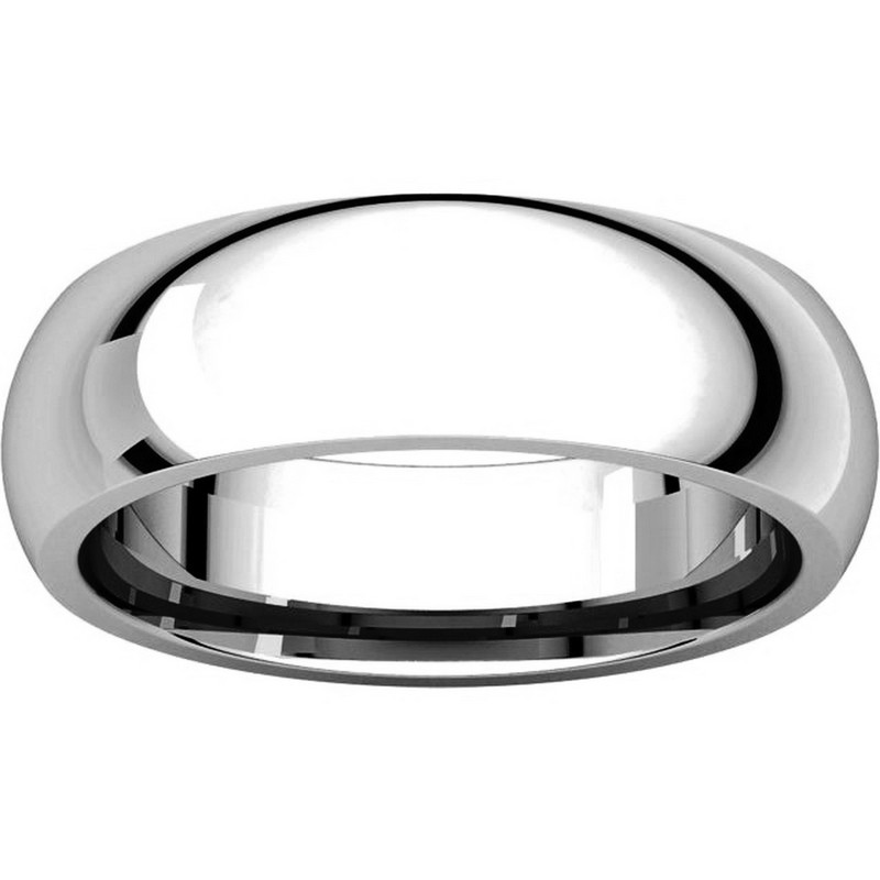 Palladium, plain heavy comfort fit, 6.0 mm wide wedding band. The finish on the wedding ring is polished. Other finishes may be selected or specified.