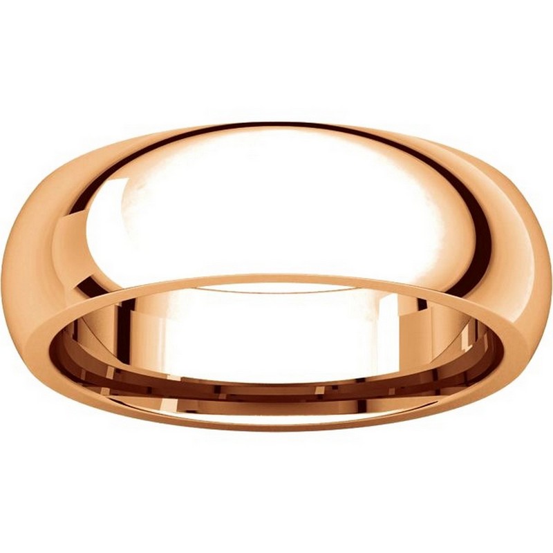 14K Rose gold, plain heavy comfort fit, 6.0 mm wide wedding band. The finish on the wedding ring is polished. Other finishes may be selected or specified.