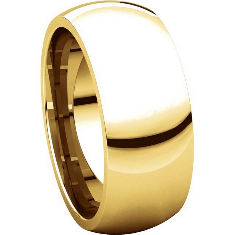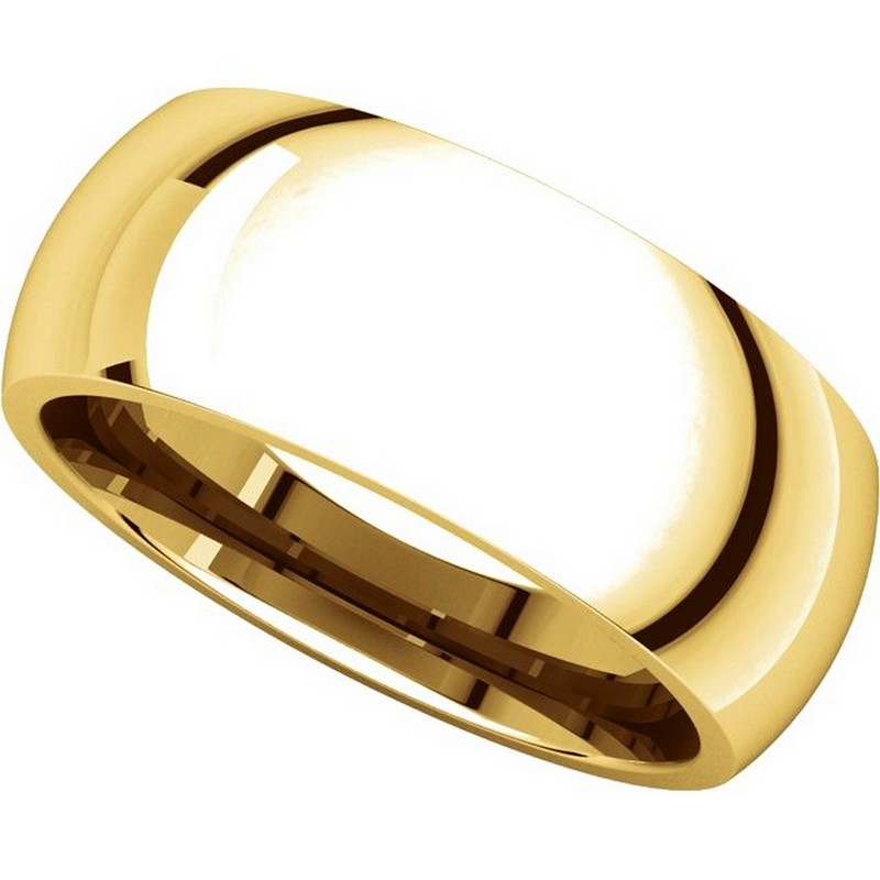18K yellow gold, plain heavy comfort fit, 8.0 mm wide wedding band. The finish on the wedding ring is polished. Other finishes may be selected or specified.