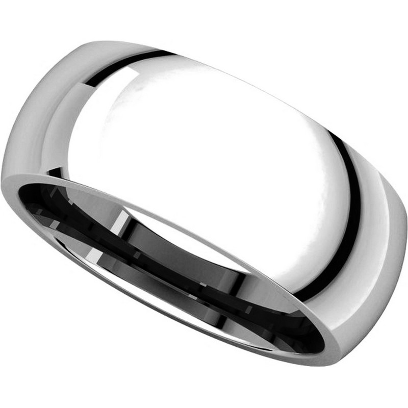 18K white gold, plain, heavy comfort fit, 8.0 mm wide wedding ring. The finish on the wedding ring is polished. Other finishes may be selected or specified.